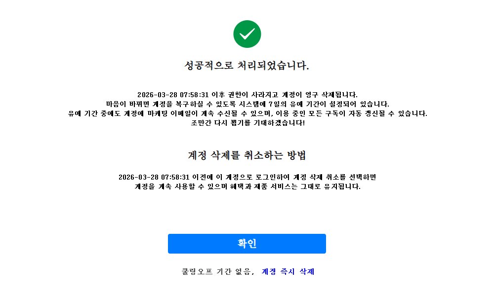 그렇게 하여 지금 ‘계정 삭제’라는 이름으로 ‘회원 탈퇴’를 시도해 보네^
